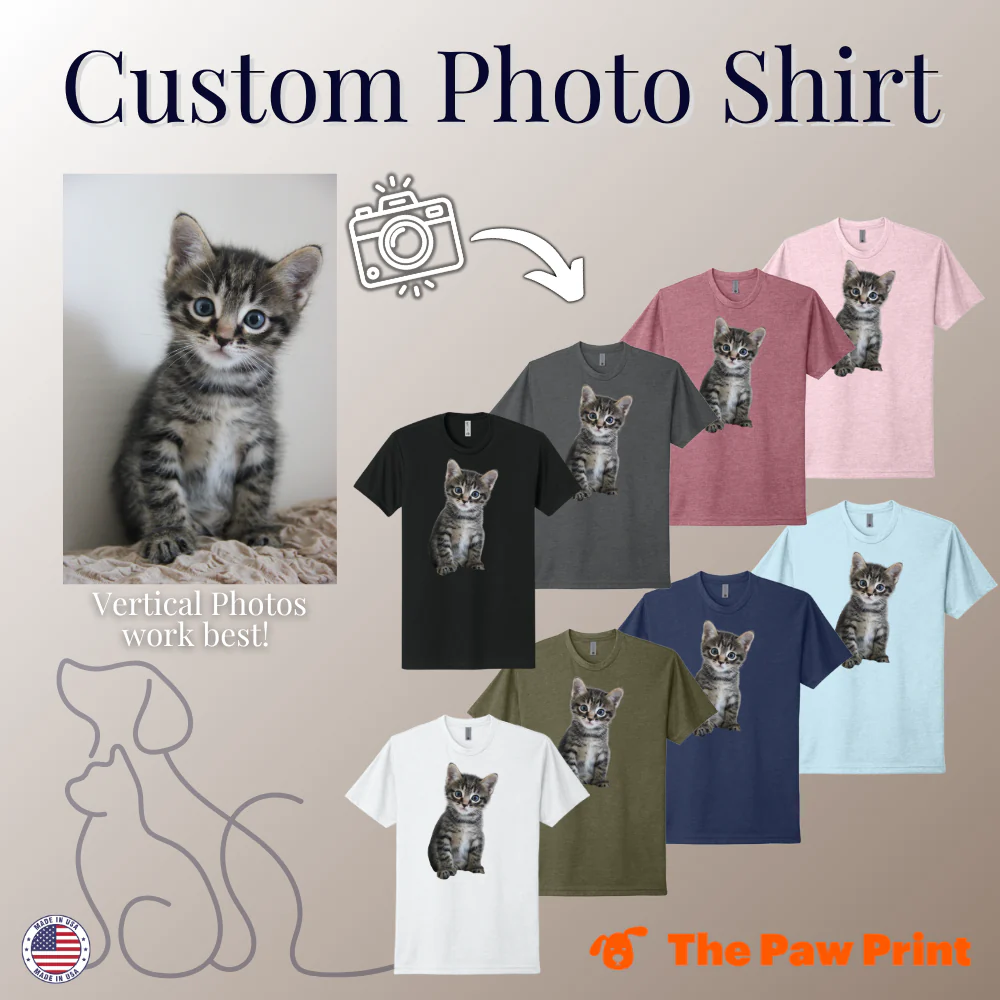 Whether your pet is a dignified senior, a mischievous kitten, or a couch-loving goofball, this shirt lets their personality shine. Just upload your photo, and we’ll bring your four-legged star to life in vivid detail and vibrant color.
